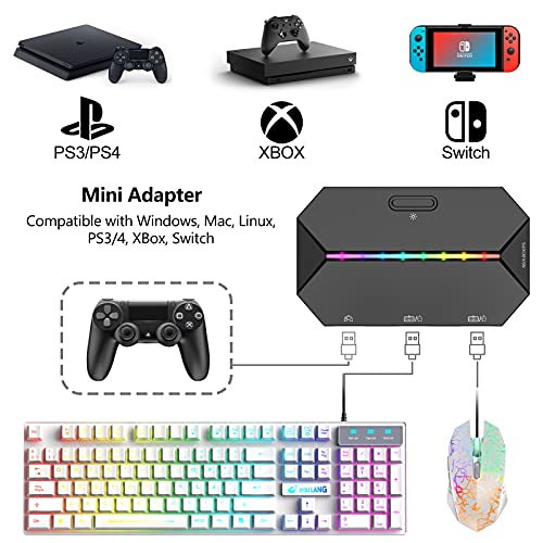 - 【 Convertidor de teclado y ratón】El convertidor tiene 4 colores de retroiluminación LED, totalmente compatible con Nintendo Switch/Xbox One/Xbox 360/PS4/PS3. Te permite rendir mejor en varios juegos.