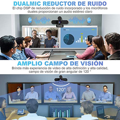 - 【Micrófono dual estéreo y 3D con cancelación automática de ruido incorporado】 Micrófono estéreo omnidireccional de absorción de sonido y reducción de ruido incorporado, que captura audio dentro de 17 pies, hace que su comunicación sea clara durante el tiempo de videos. Capte su voz y filtre el ruido de fondo automáticamente. Puede proporcionar una experiencia de video maravillosa incluso en un entorno ruidoso. Excelente para seminarios web, videoconferencias, transmisión en vivo, etc.
