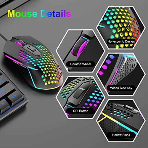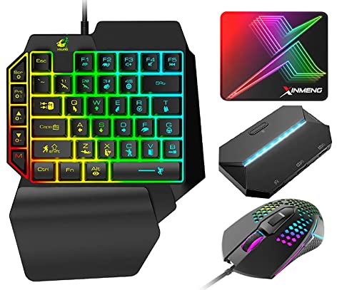 Teclado para Juegos con Cable Sensación mecánica Arco Iris retroiluminado+Ratón USB Ultraligero para Juegos+Convertidor con retroiluminación LED para Nintendo Switch/Xbox/PS4/PC+Alfombrilla de ratón