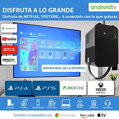 Proyector 4K, Android, Proyector portatil, Soporte AC3, hasta 135", Bluetooth, Altavoces Integrados, Keystone 4D, Preparado para PS5, Xbox Series, Zoom Digital, Color Negro