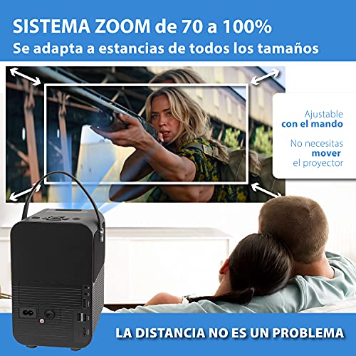 - ? 【KEYSTONE 4D Y ZOOM DIGITAL】: El proyector portatil Seelumen FH650 es completamente configurable , podrá instalarlo incluso a un lateral de su sala o aumentar y disminuir el tamaño de la imagen desde el mando a distancia simplificando la instalación del proyector