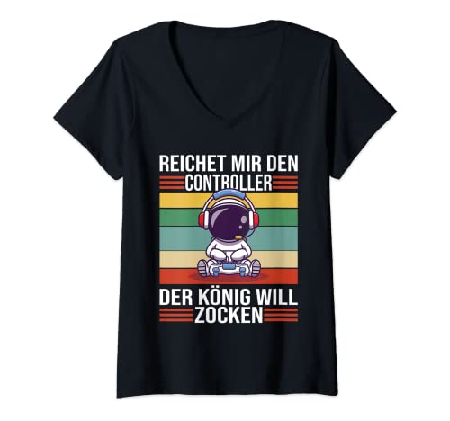 Mujer Zocken Reichet mir den Controller König PS5 Consola Gamer Camiseta Cuello V