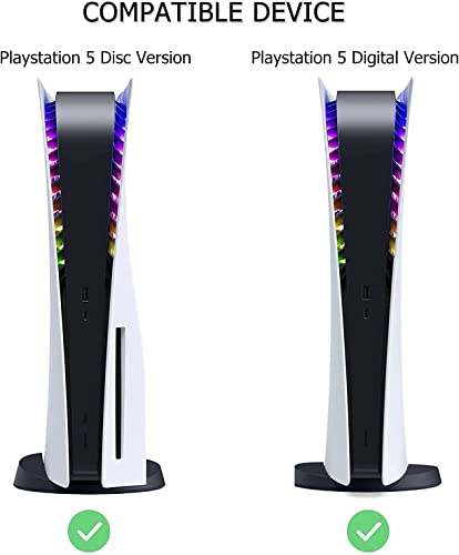- 【Función de cambio de color y efecto de luz】 La tira de luz LED tiene un total de 7 colores (rojo, blanco frío, amarillo, rosa, cian, verde, azul). 29 modos para elegir, puede personalizar su consola para PS5 y darle un color único.