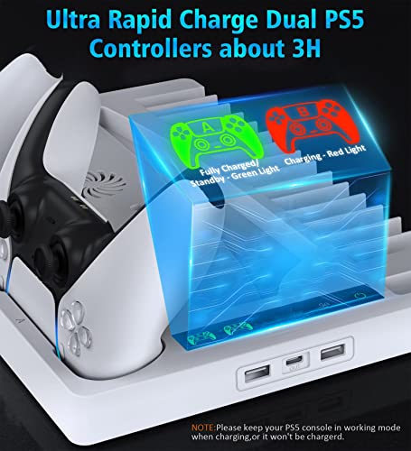 - 【Eficientes ventiladores de enfriamiento de PS5 para carga de alta velocidad】 El soporte de PS5 con ventiladores de enfriamiento de PS5 eficientes y la estación de carga del controlador ps5 admite la carga completa de dos controladores de ps5 en 3 horas al mismo tiempo. tus sesiones de juego de ps5 extendidas o carga durante la noche.
