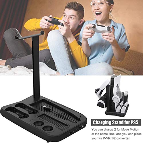 KZJIEZH Soporte de enfriamiento PS5, soporte de carga vertical, con ventilador de refrigeración DualSense Controller Cargador Soporte PS5 Cooler, con soporte de disco base multifunción, base de la est