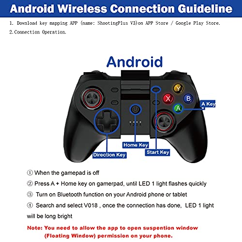 PUBG Mobile Controller, Wireless Key Mapping Gamepad Joystick Perfect for PUBG & Fotnite, Android Gamepad, Xiaomi Gamepad, Compatible for Android Phone Tablet PC - Direct Play