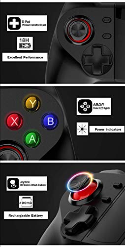 - Apoyo completo de PUBG y FORNITE – El gamepad es compatible con juegos de acción, carreras, lucha, tiro, atletismo. Star Wars Galaxy of Heroes, Summoners War, War Dragons, Golf Clash, NBA 2K Mobile Basketball, NBA LIVE Mobile Basketball, WWE SuperCard, Madden NFL Overdrive Football, MLB 9 Innings 18, MLB Tap Sports Baseball 2018, Mobile Legends Bang Bang, King of Avalon Dragon Warfare