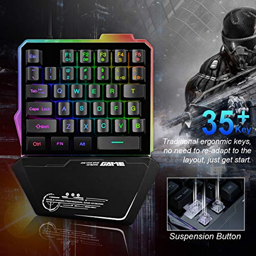 - Cómodo y portátil: teclado de 35 teclas con una sola mano con diseño portátil, que puedes llevarlo contigo a todas partes en cualquier momento, ideal para el control con una sola mano. Larga vida útil y buena resistencia al desgaste, alambre trenzado con puerto USB, sensación mecánica de la mano, diseño optimizado, cumple fácilmente con tus requisitos de juego.