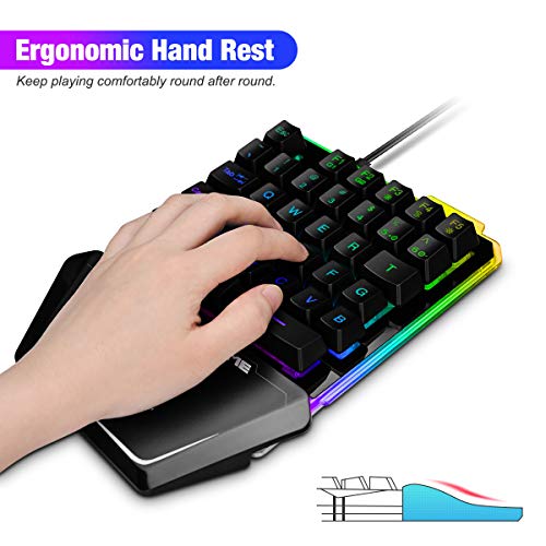 Songway Teclado mecánico para Juegos de una Mano con retroiluminación LED RGB, 35 Teclas, Teclado para Juegos de Respuesta rápida con reposamuñecas, Medio Teclado USB