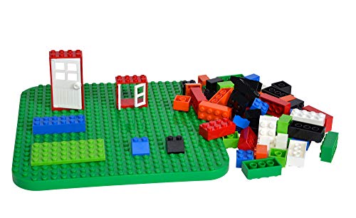 - Contenido del set: en el cubo hay un total de 500 piezas. Entre ellos se incluyen varios bloques de construcción, así como ventanas y puertas. La tapa del cubo contiene una placa verde. Gracias al práctico cubo los bloques de construcción para niños se ordenan y se guardan en un abrir y cerrar de ojos