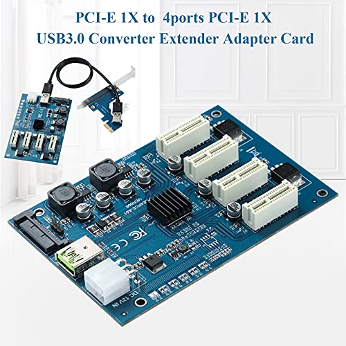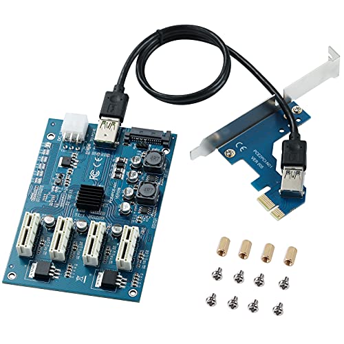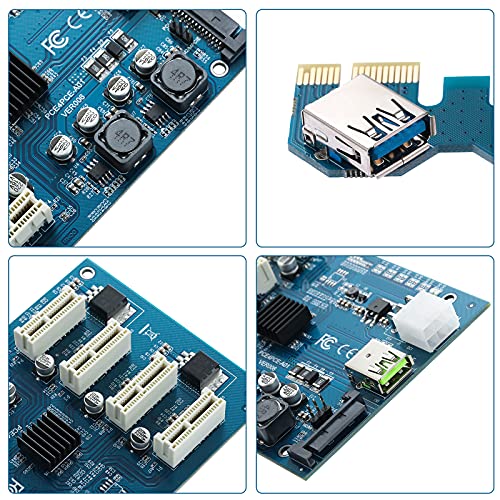 BEYIMEI PCI-E 1X a 4 Puertos PCI-E 1X Tarjeta Riser , Tarjeta PCIe de Interfaz múltiple, Tarjeta pcie (6 Pines y SATA), Adecuada para minería BTC, Compatible con WIN7 / 8 / 8.1 / 10 / Linux