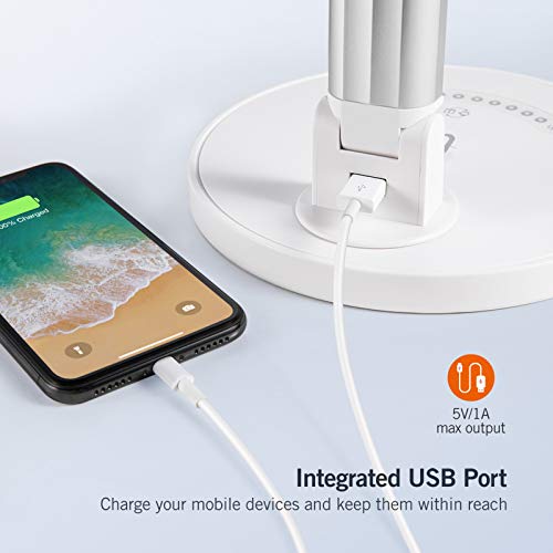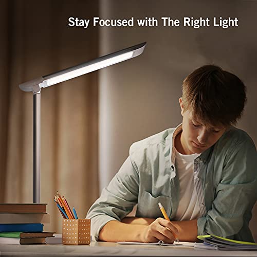 Lámpara de escritorio LED, Flexo de Escritorio protección de los ojos, regulable, control táctil, con 7 niveles de brillo, 5 modos de iluminación, puerto de carga USB