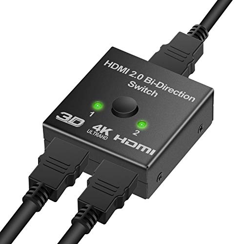HDMI Switch, Conmutador HDMI Switcher Bidireccional Entrada 2 a 1 Salida o Switch 1 a 2 Salida, Soporta 4K 3D y 1080P para HDTV BLU-Ray Player PS3 PS4 DVD DVR Xbox etc