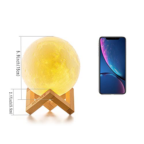 15cm Lámpara de Luna 3D, PITCH PULSE Luz Nocturna Luna LED Control Remoto y Control Táctil 16 Colores RGB Brillo Regulable Recargable USB, Decorativa para Dormitorio Salón, Regalo para Mujeres y Niños