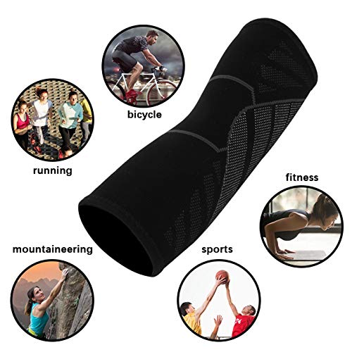 - ★ 【Aplicación】 Esta protección para los codos es adecuada para cualquier actividad que pueda poner mucho estrés en las articulaciones, como béisbol, baloncesto, entrenamiento, fútbol, fitness, senderismo, correr, tenis, voleibol, etc. Este producto proporciona un codo excelente apoyo mientras asegura un rendimiento óptimo y movimiento libre del codo!