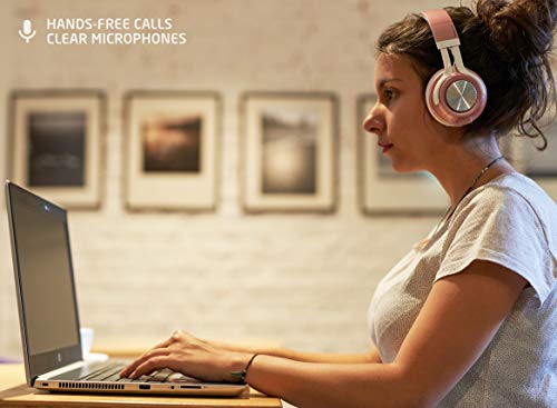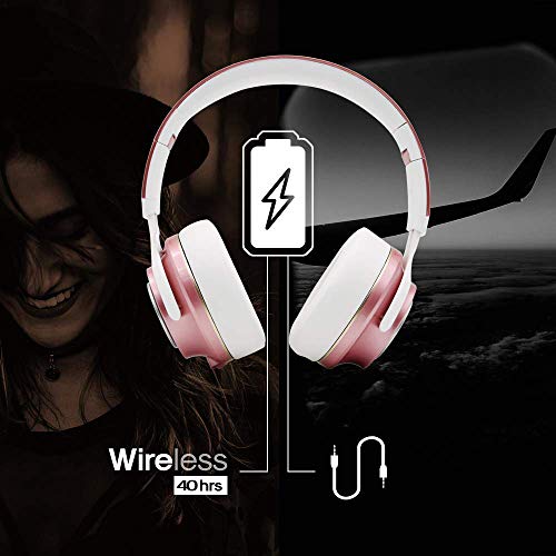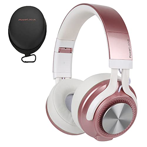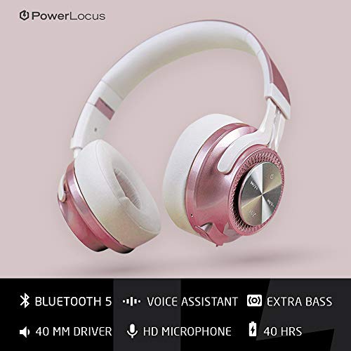 PowerLocus Bluetooth Auriculares Diadema, [Bluetooth 5.0,40h de música] Cascos Bluetooth Inalámbrico Plegable Casco Bluetooth y Cable Sonido Estéreo con Micrófono para iPhone,Móviles,TV, PC, Oro Rosa