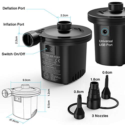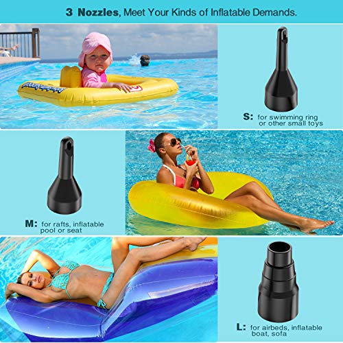 - Nuestra bomba de aire eléctrica viene con boquillas de tamaño S-0.65cm, M-1.75cm, L-2.25cm, todos los cuales cumplen con nuestros requisitos para inflar o desinflar varios artículos hasta cierto punto.