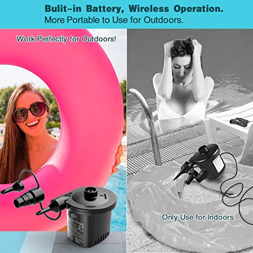 - El pequeño tamaño de nuestra bomba de aire eléctrica para botes inflables está hecho de plástico ABS, es liviano y portátil.