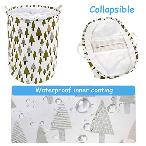 LEADSTAR Cesta de Almacenamiento de Tela,Plegable Cesto para la Colada con Cubierta de Cordón y Asas para Ropa Juguetes, Niños Dormitorio,Organizador del Hogar, Verde Árbol
