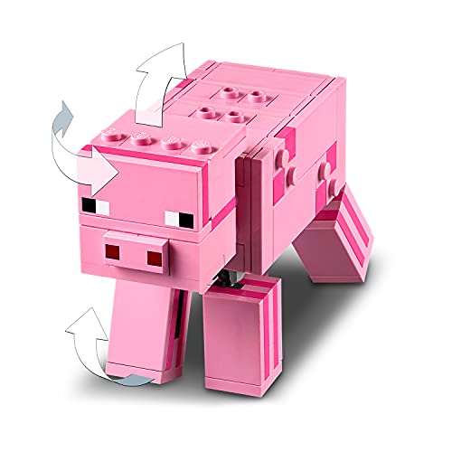 - Con sus aproximadamente 10 cm de longitud y 6 cm de altura, la BigFig del cerdo ofrece la diversión del mundo de Minecraft a gran escala en un sinfín de aventuras, ya sea con el bebé zombi de aproximadamente 7 cm de altura o en compañía de otras BigFigs de la colección LEGO Minecraft.