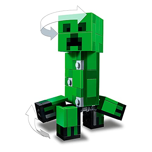 - Con sus aproximadamente 10 cm de altura, la BigFig del Creeper ofrece diversión al estilo Minecraft a gran escala, tanto si sale a correr aventuras con el ocelote (de aproximadamente 5 cm de altura) como si desata el pánico entre otras BigFigs LEGO Minecraft.
