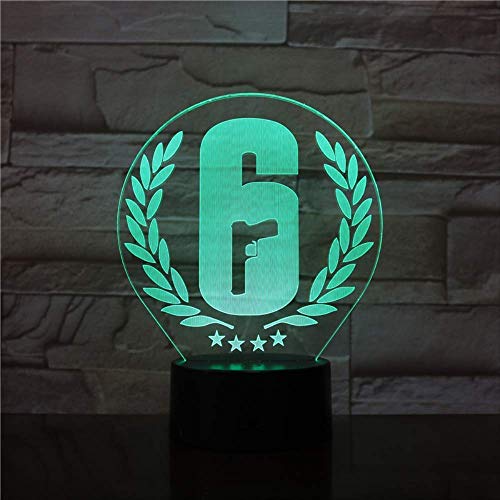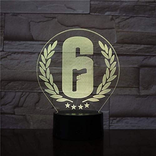 Lámpara de ilusión 3D, LED Night Light Rainbow Six lamp, Siege Table Room Decoration Sensor de carga USB, Touch Light Child Gift Rainbow Night lamp