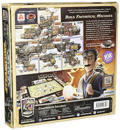 - 16 Inventor cards, 16 Inventor character tiles, 16 starting Machine Part cards, 136 Machine Part cards, 40 Boost cards, 108 Dice, 40 Cog tokens, 1 full color rulebook