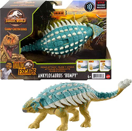 Jurassic World Ataque Rugido Ankylosaurus Dinosaurio articulado con sonidos, figura de juguete para niños Mattel GWY27