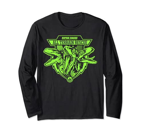 Jurassic World Neon Raptor Squad Rescue Logo Manga Larga