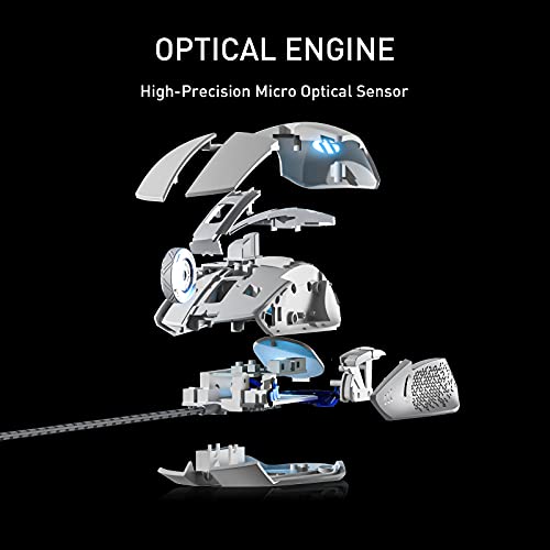 - ??【Precisión y libertad en tus manos】El micrón de alta precisión Pro. Gaming IC ofrece una precisión milimétrica y una capacidad de respuesta extrema, le permiten controlar el movimiento libremente. ¡6 niveles de DPI ajustables de 800 a 8000 para cambiar fácilmente entre el uso diario y el juego intenso! Cada nivel de DPI tiene su propio color de luz para recordar fácilmente el DPI favorito. El cable suave y ligero de 1,6M permite que el ratón se mueva libremente sin restricciones.