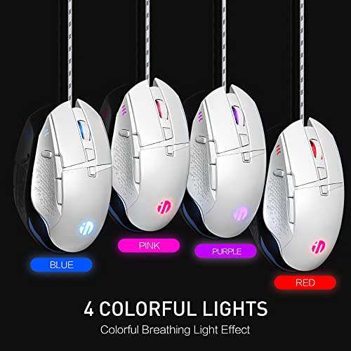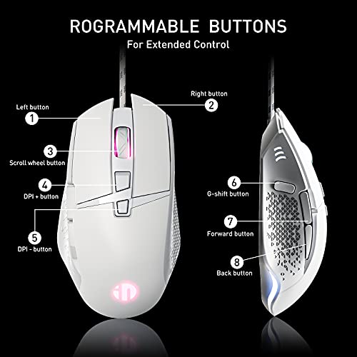Ratón Gaming con Cable,Inphic Gaming Ratón Óptico,8 Botones Programables,4800 dpi.Ratón Ergonómico para RGB Lights,Mice para Juegos USB con PC, Portátil ,Blanco