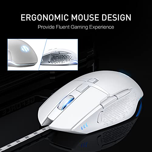 VersionTECH. Ratón Gaming con Cable hasta 2400 DPI Ratón Ergonómico Óptico para Juegos con 7 Colores Luz LED 6 Botón Gaming Mouse Wired para PC/Ordenadores Portátil/Mac(Blanco)