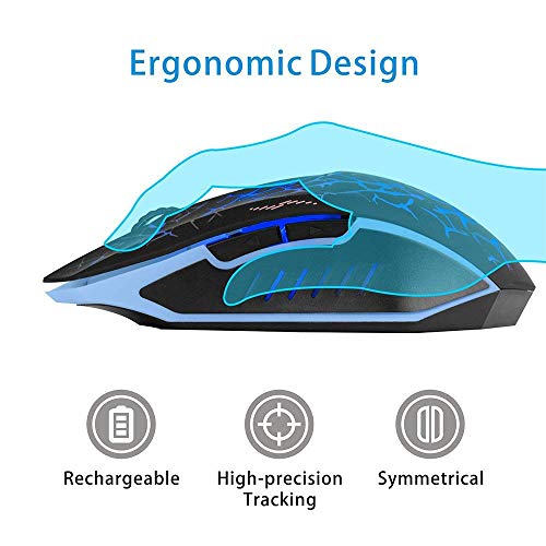 - 【Ratón Profesional para Gamer】 El efecto del agrietamiento combina con 7 colores que brillan intensamente la luz del LED, destaca la atmósfera del juego; El sonido alegre y agradable que produce clic te hace sentir emocionado y nunca querrás dejar de luchar en los juegos.