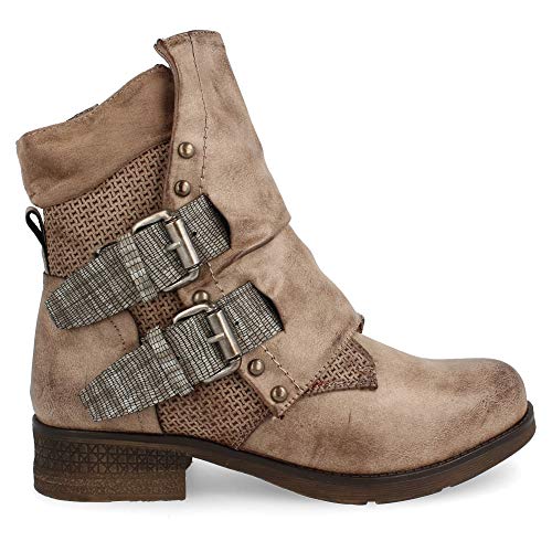 Bota Motorista Mujer Casual con Hebillas y Correas Doradas Primavera Verano 2019. Talla 36 Taupe