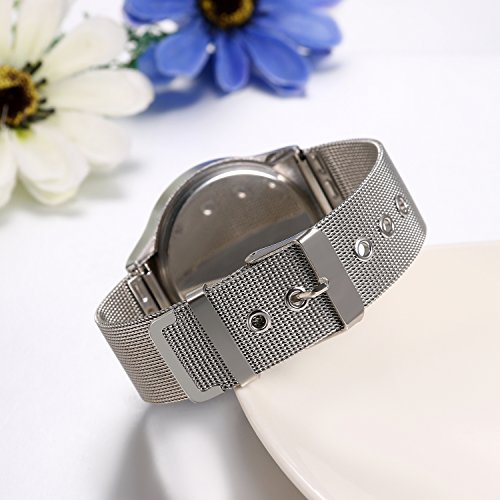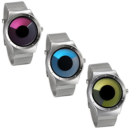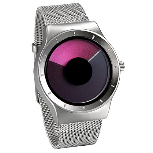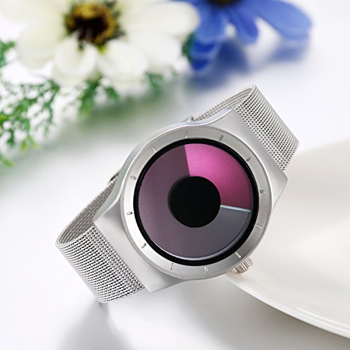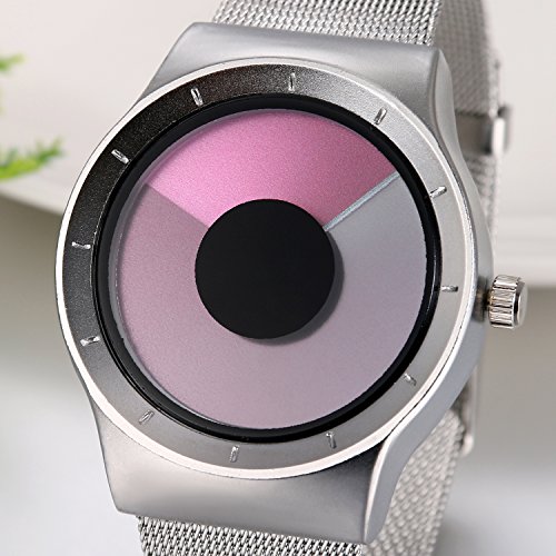 JewelryWe Reloj de Cuarzo para Hombre Mujer, Cambios de Color Indicador Reloj Rosa Movimiento de Las Esferas, Correa de Acero Inoxidable