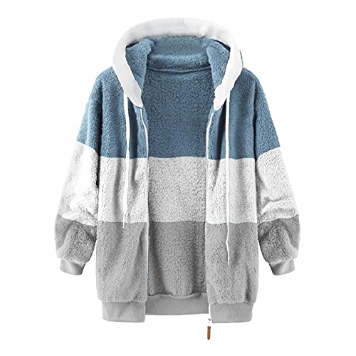 riou Mujer Sudadera con Capucha Chaqueta Jersey Talla Grande Hoodie Suave y Confortable Suelto Empalme de Rayas Manga Larga Suéter Cálido Pullover Otoño Invierno