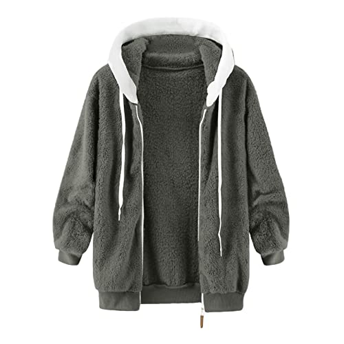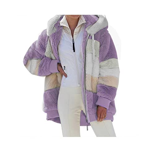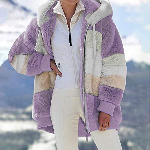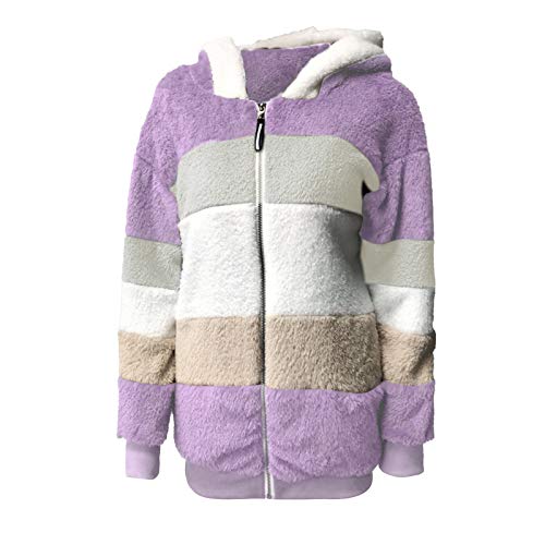 Chaqueta de Forro Polar Mujer Outwear con Capucha Parte Delantera Abierta Patchwork Gruesa Cálida con Cremallera Bolsillos Suéter Abrigo de Algodón Manga Larga de Piel Sintética Rompeviento Top Casual