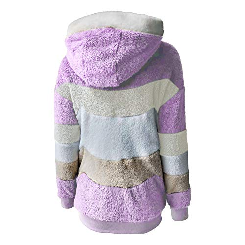 Chaqueta de Invierno Mujeres de Lana Outwear con Capucha Parte Delantera Color Block Abrigos Exteriores con Bolsillos De Gran Tamaño Manga Larga Hoodie Chaqueta Caliente Rompeviento Top Casual
