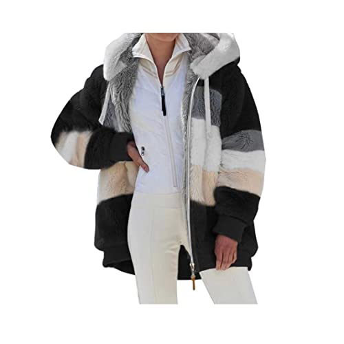 Mujer Abrigo de Forro Polar de Invierno De Gran Tamaño Manga Larga Hoodie Suéter con Capucha y Cremallera Suéter de Las Señoras Del Color sólido Patchwork Top CÔrdigans Casual con Bolsillos Cremallera