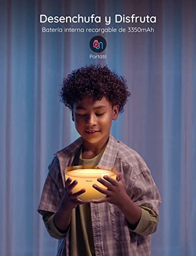 - Fácil de Transportar: Saque la lámpara de mesa portátil Govee del enchufe, puede proporcionarle horas de iluminación inalámbrica con la batería interna recargable de 3350 mAh en su dormitorio, patio y en cualquier lugar de la casa.