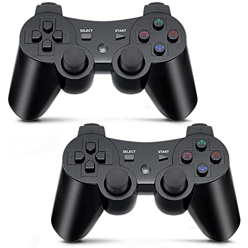 Mando Inalámbrico para PS3, Gamepad inalámbrico para PS3 Bluetooth Recargable Joystick Six-Axis Mando Controlador para Playstation 3(2 Negros)