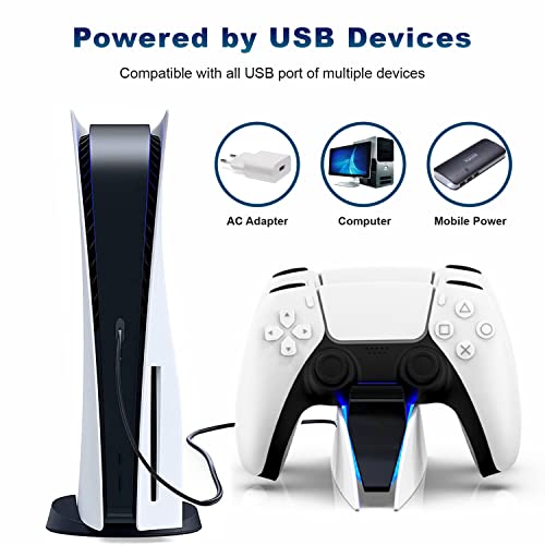 - El Cargador para mando PS5 le permite cargar 2 controladores PS5 al mismo tiempo sin conectarse a la consola PS5. Puede conectarlo a la consola PS5, PC o adaptador de corriente USB para cargar su controlador PS5. ¡Es un gran regalo para su familia / colegas / amigos a los que les encanta jugar!