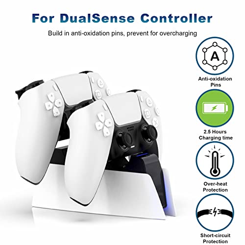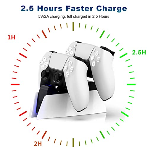 - El cargador de controlador PS5 está diseñada para cargar dos mandos PS5 al mismo tiempo. Solo se necesitan 2.5 horas para cargar completamente los dos mandos PS5.