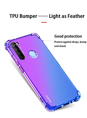 HAOYE para Xiaomi Redmi Note 8T Funda, Funda Gradiente Transparente TPU, Carcasa Cristal Ultra Slim Flexible Suave Silicona TPU Bumper, Reforzar la Cuatro Esquinas Case Cover (Morado/Azul)