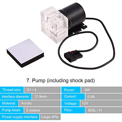 - Alto Rendimiento:El bloque de CPU / GPU está construido con una base de cobre para proporcionar una transferencia de calor y un rendimiento de refrigeración excepcionales. Los ventiladores duales de rendimiento extremo ofrecen una alta presión estática de aire con menos ruido. 9W 600L / H Impermeable G1 / 4 Tamaño de rosca Bomba de agua altamente silenciosa, alta estabilidad, larga duración Instalación y configuración fáciles e intuitivas