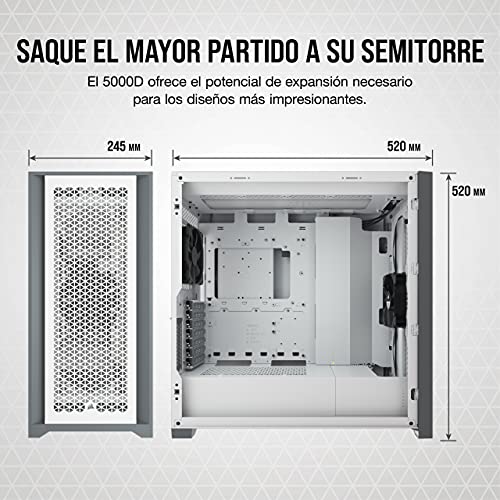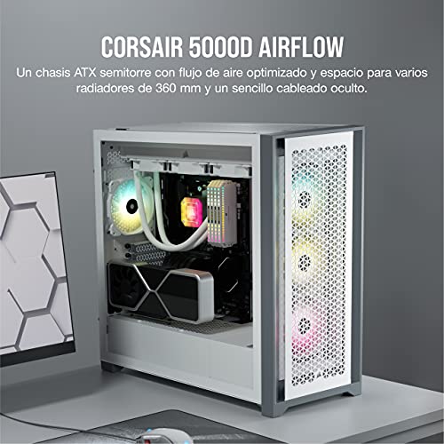 Corsair 5000D Airflow Chasis de PC ATX Semitorre con Cristal Templado (Panel Frontal con un Caudal de Aire Elevado, Sistema de Gestión del Cableado RapidRoute, Dos Ventiladores de 120 mm) Color Blanco