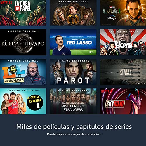 - Miles de apps, Skills de Alexa y canales, incluyendo Netflix, YouTube, Prime Video, Disney+, DAZN, Atresplayer, Mitele y más. Pueden aplicarse cargos de suscripción.