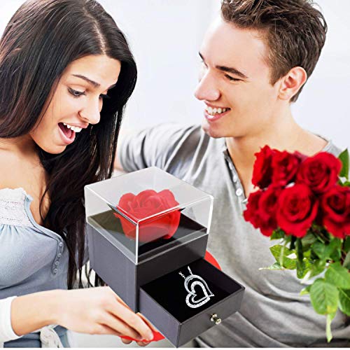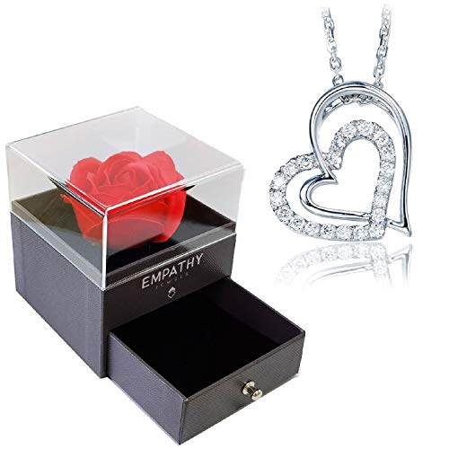 EMPATHY JEWELS Colgante Mujer Corazon Plata De Ley 925, regalo romántico para ella – Regalos originales para mujer joven con Rosa Roja eterna para aniversario.