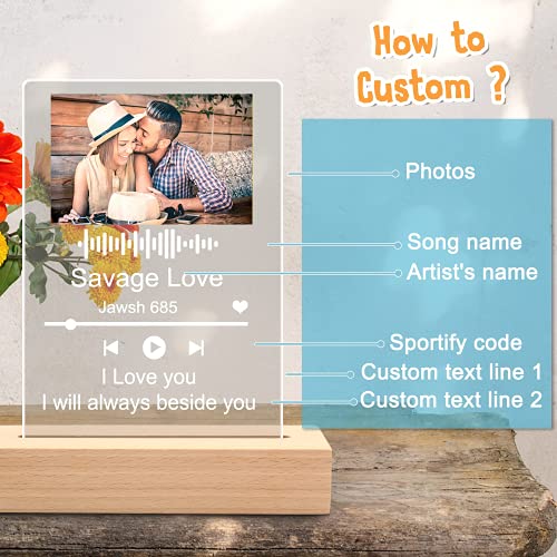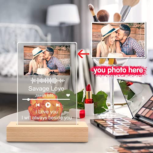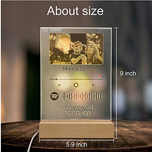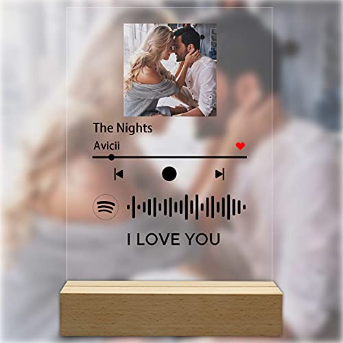 Q&K Arte de Vidrio de Spotify Personalizado Música Placa con Luz de Noche,Placa de Foto de Código de Spotify Escaneable Personalizada,Regalos para Novio, Novia, Tu Madre