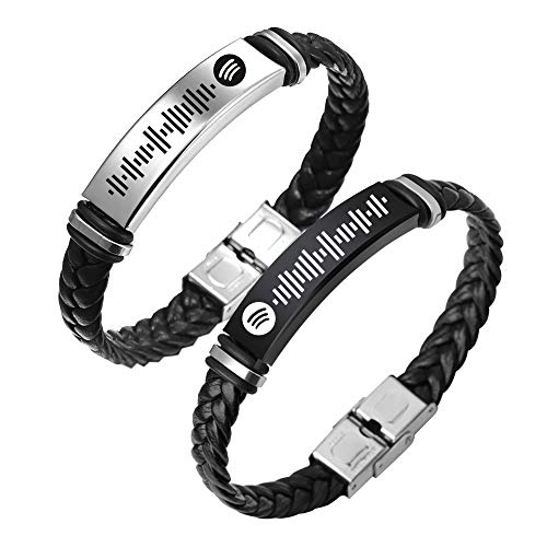 SalmophC Música Personalizada Spotify Scan Code Pulsera Custom Spotify Code Pulsera de Cuerda de Cuero Pulsera de Acero Inoxidable para Parejas Regalo de joyería para Hombres Mujeres